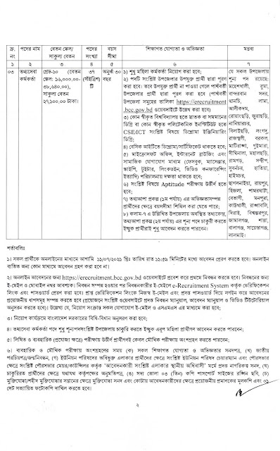 আগ্রহী প্রার্থীরা (http://erecruitment.bcc.gov.bd) ওয়েবসাইট থেকে আবেদনপত্র পূরণ করে আগামী ১১ জুলাই পর্যন্ত জমা দিতে পারবেন।